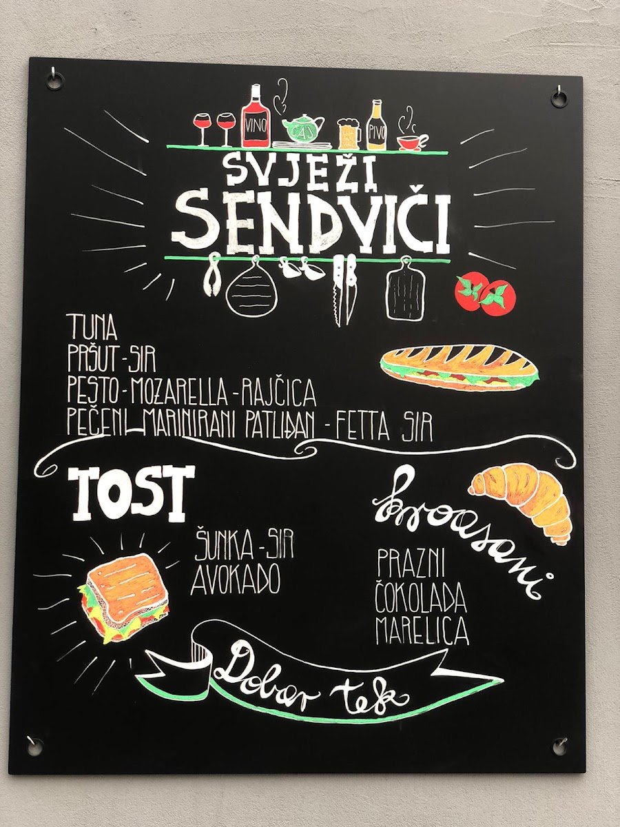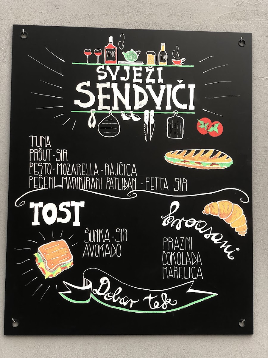 The menu at Caffe bar Franz primarily features a selection of coffee and beverages suitable for various times of the day, including breakfast, coffee breaks, and casual light meals. Coffee options include espresso and coffee with milk, catering to traditional coffee preferences. Additionally, the menu offers beer (pivo), providing an alternative beverage choice.